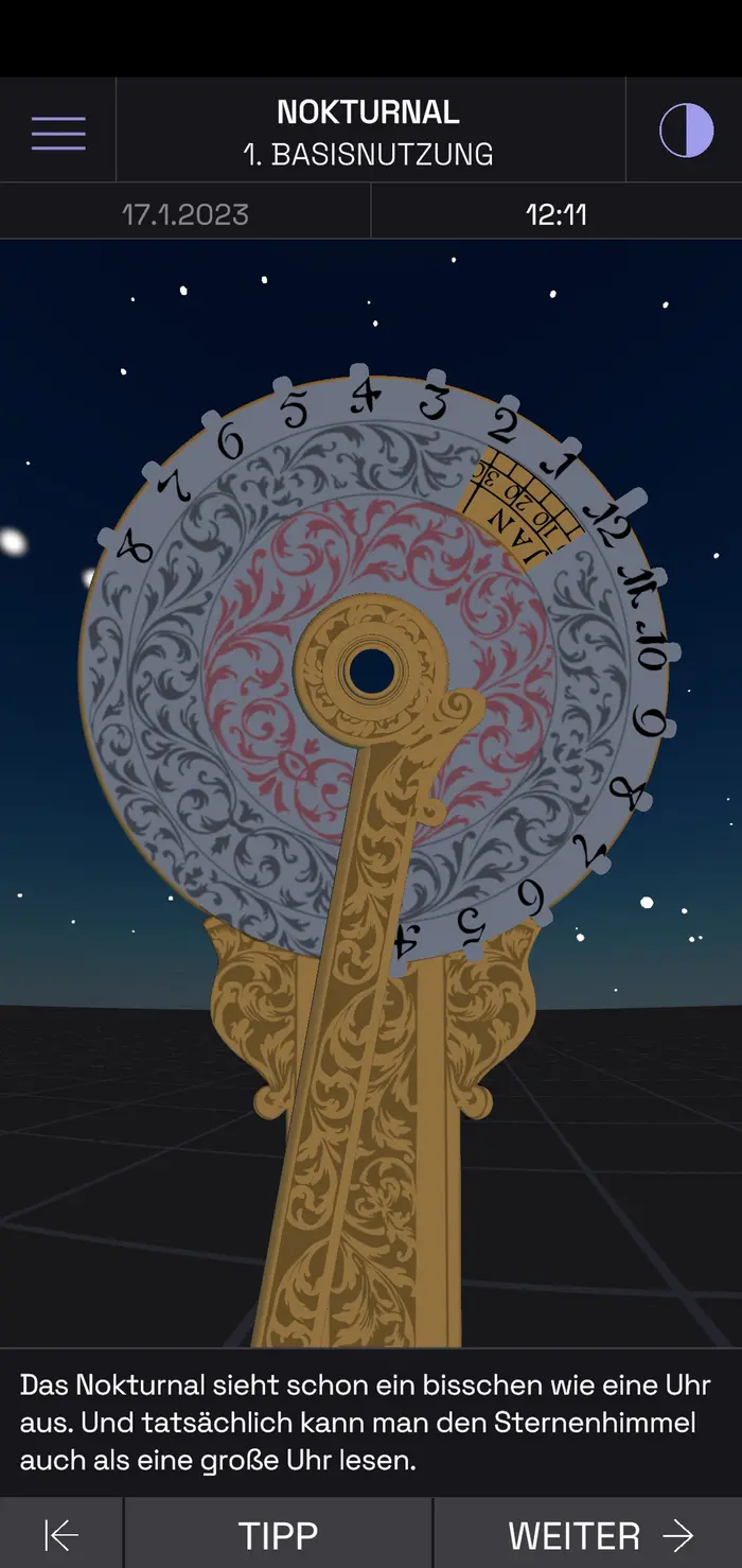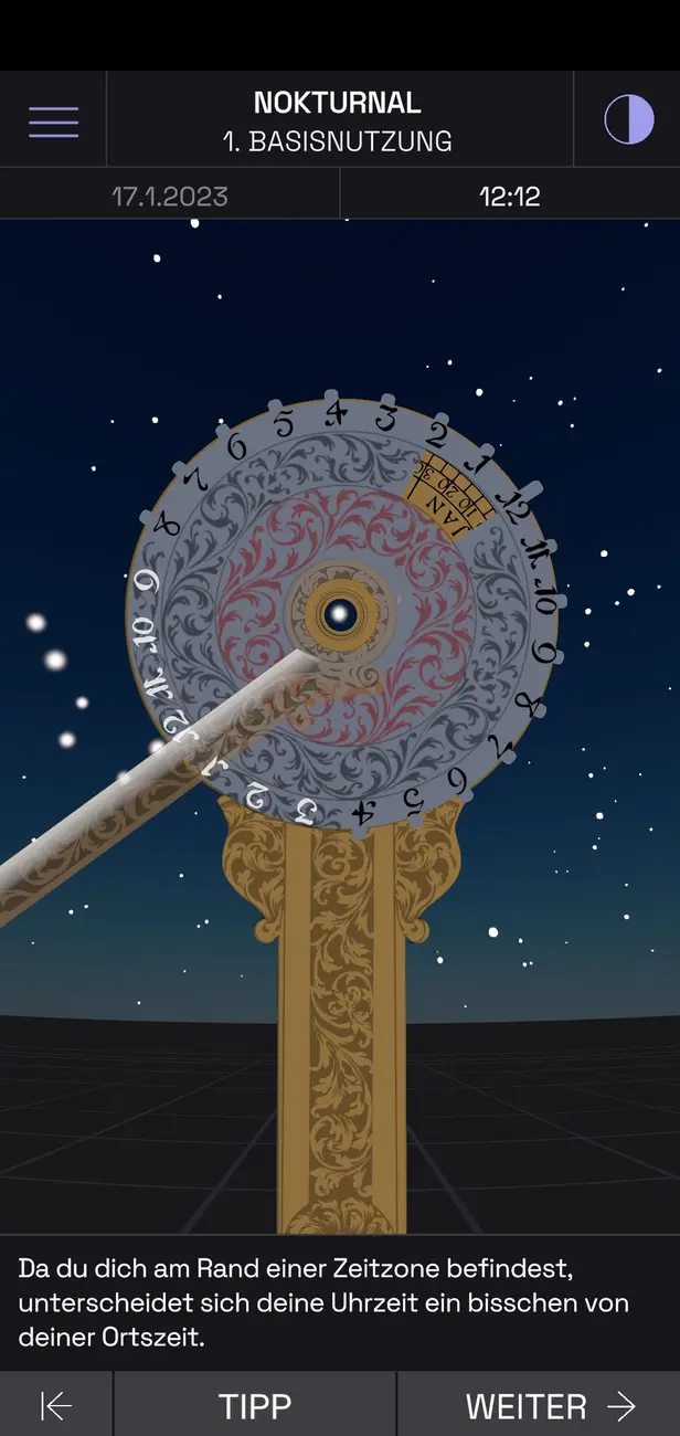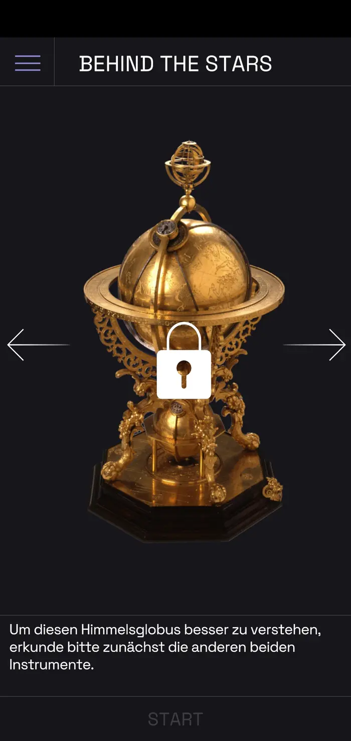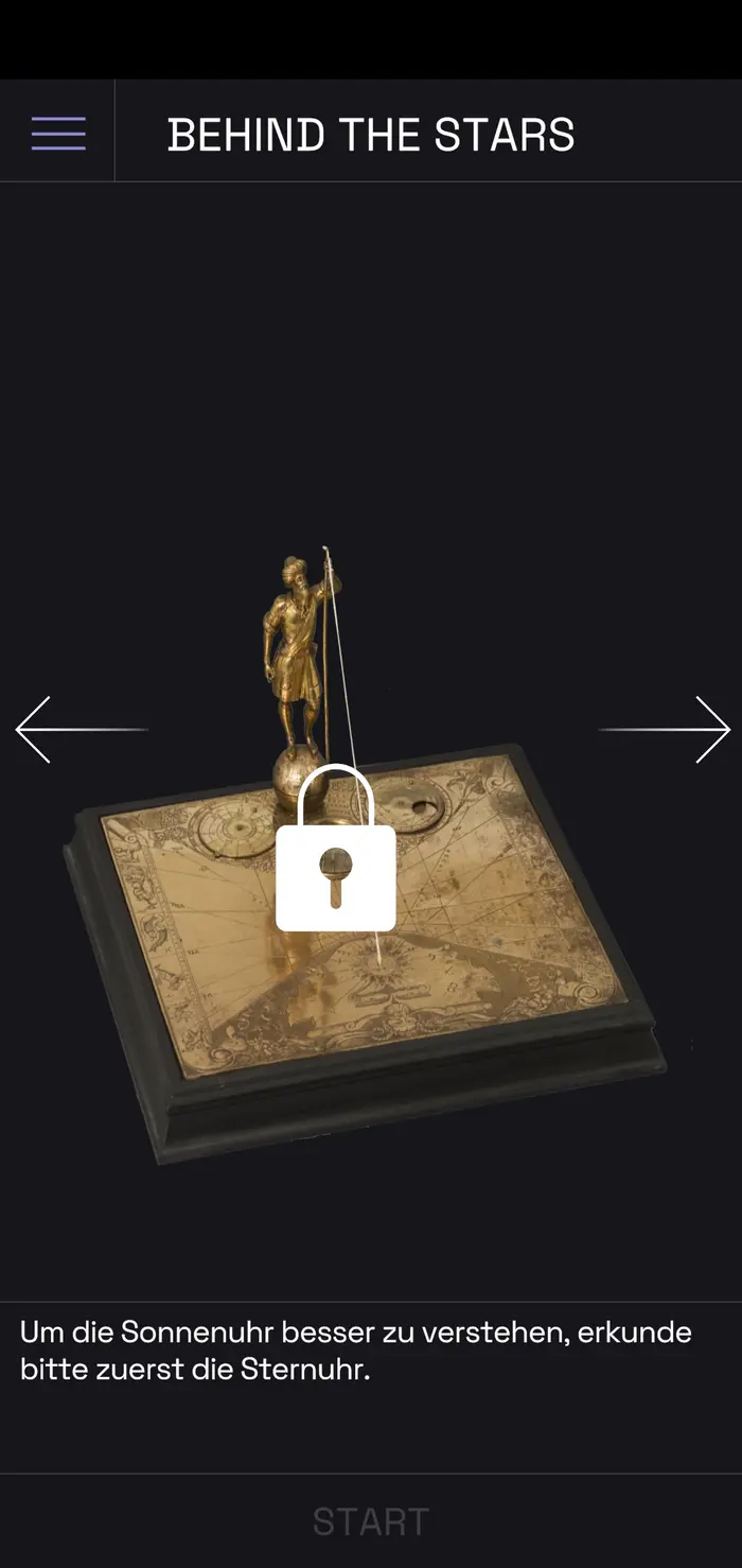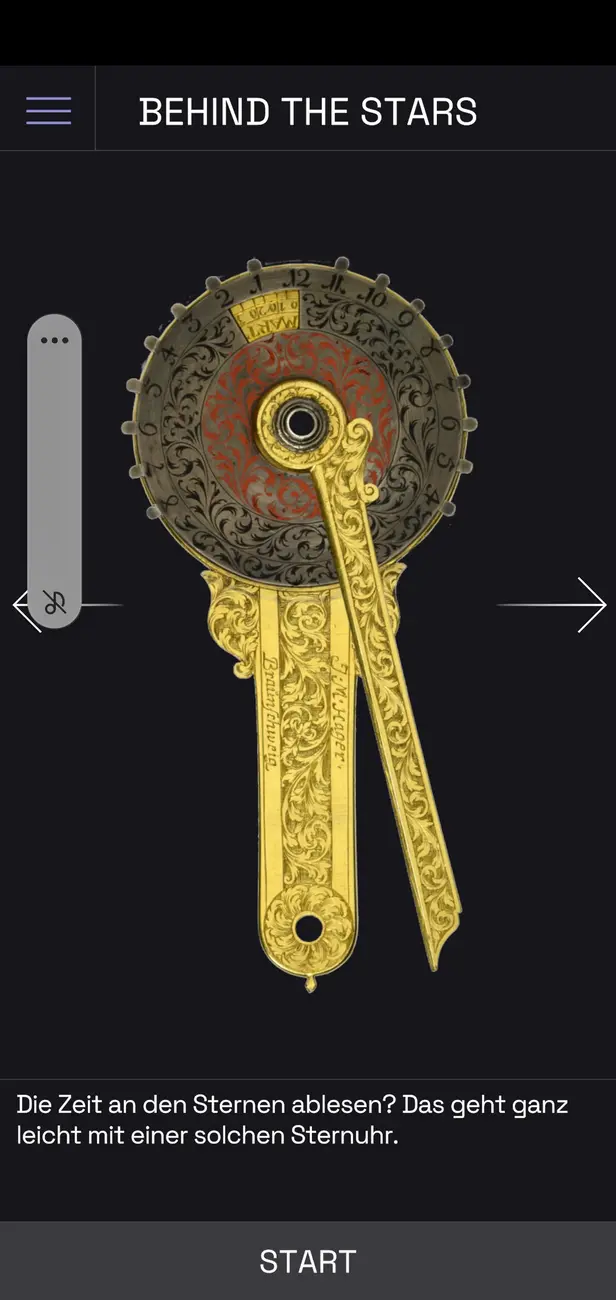 Kann man die Uhrzeit an den Sternen ablesen? Oder das Datum am Stand der Sonne? In BEHIND THE STARS lernst du diese und andere Fragen spielerisch zu beantworten. Dafür warten drei astronomische Instrumente auf dich: eine Sternuhr, eine Sonnenuhr und ein Himmelsglobus. Sie stammen alle aus dem Mathematisch-Physikalischen Salon in Dresden, einem der ältesten Museen der Welt.